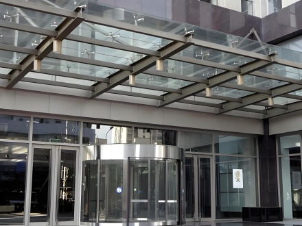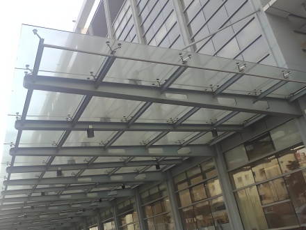 玻璃雨棚以鋼結(jié)構(gòu)框架為主要結(jié)構(gòu),選用優(yōu)質(zhì)Q235材質(zhì)的系列鋼管等制作而成的防雨棚帳。鋼結(jié)構(gòu)通過冷彎成型的彎圓設(shè)備彎制的;鋼柱與基礎(chǔ)面的的銜接采用預(yù)埋件或螺桿錨固技術(shù);玻璃采用兩層夾膠工藝,確保破了一層還有一層,傷不到人。