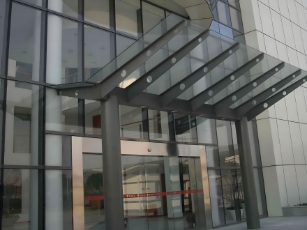 玻璃雨棚以鋼結(jié)構(gòu)框架為主要結(jié)構(gòu),選用優(yōu)質(zhì)Q235材質(zhì)的系列鋼管等制作而成的防雨棚帳。鋼結(jié)構(gòu)通過(guò)冷彎成型的彎圓設(shè)備彎制的;鋼柱與基礎(chǔ)面的的銜接采用預(yù)埋件或螺桿錨固技術(shù);玻璃采用兩層夾膠工藝,確保破了一層還有一層,傷不到人。