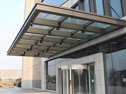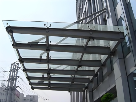 玻璃雨棚以鋼結構框架為主要結構,選用優(yōu)質Q235材質的系列鋼管等制作而成的防雨棚帳。鋼結構通過冷彎成型的彎圓設備彎制的;鋼柱與基礎面的的銜接采用預埋件或螺桿錨固技術;玻璃采用兩層夾膠工藝,確保破了一層還有一層,傷不到人。