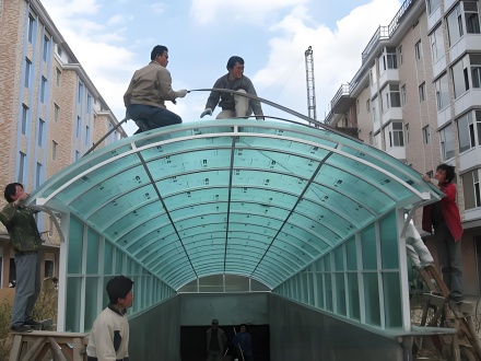 陽(yáng)光板雨棚的安裝非常簡(jiǎn)便,只需要將陽(yáng)光板固定在支架上即可。