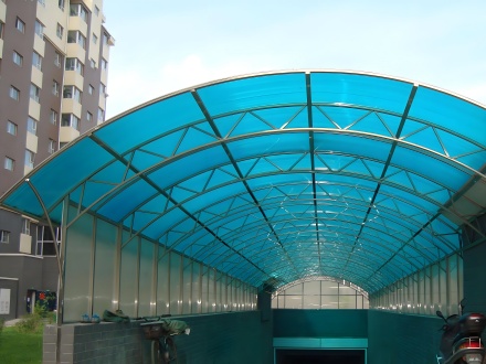 陽光板雨棚的主要材料是陽光板,這是一種由聚碳酸酯制成的透明塑料板材。